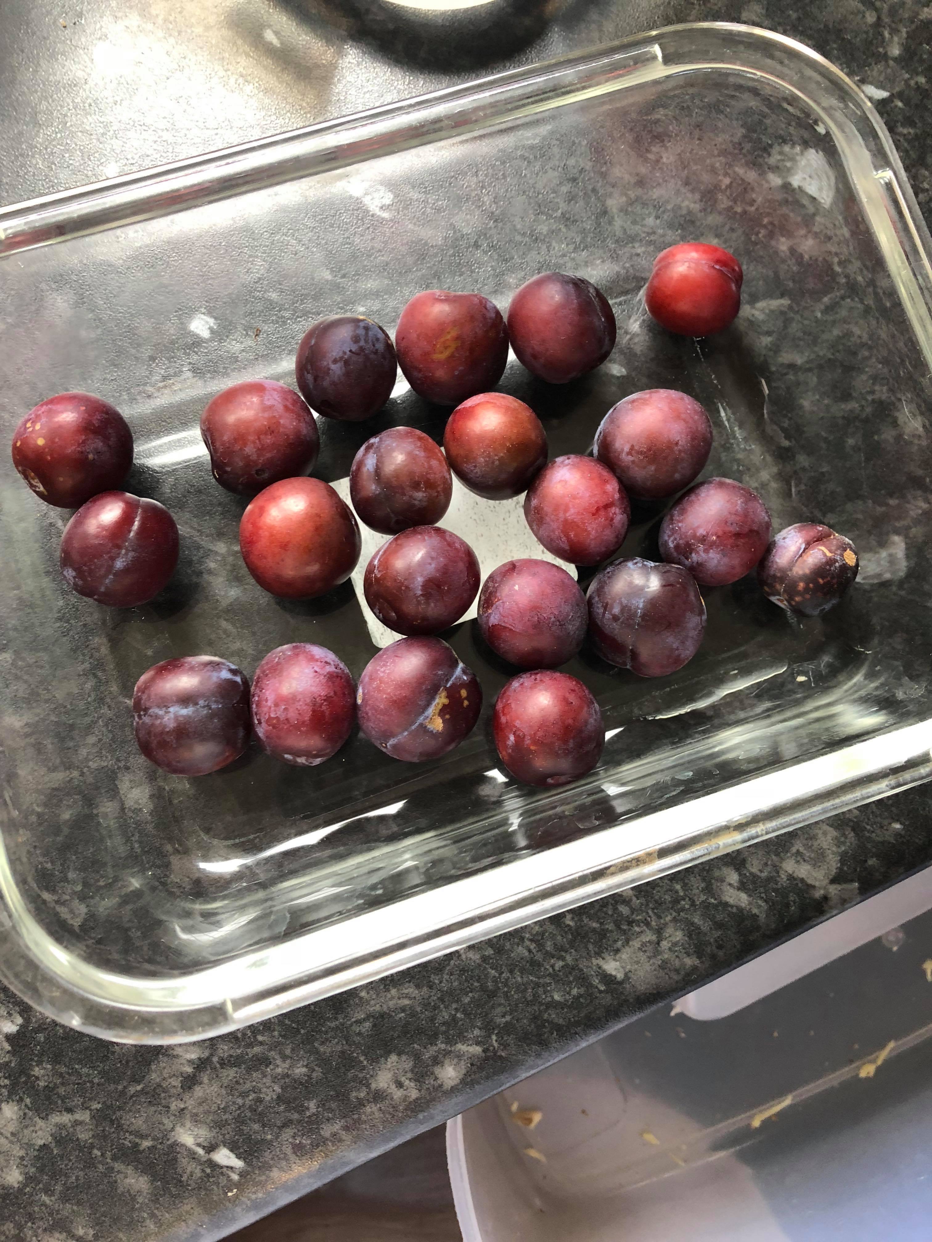 I am assuming they are plums, but they are a quite a bit smaller than plums you would buy in a supermarket. Also, I've read a lot since that suggest they could be bullace or maybe even sloes? I'm no pro so all of these new types are very confusing to me lol.